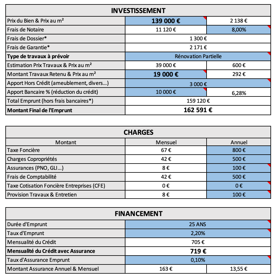 Frais de dossier, garantie, assurance : tout est intégré pour connaître le coût réel de votre opération.